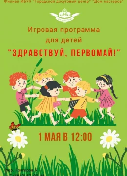1 мая в 12.00 в Доме мастеров пройдет игровая программа для детей «Здравствуй, Первомай!».