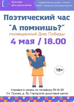 4 мая в 18:00 в МБУК «ГДЦ» пройдет Поэтический час «А помнишь?», посвященный Дню Победы.