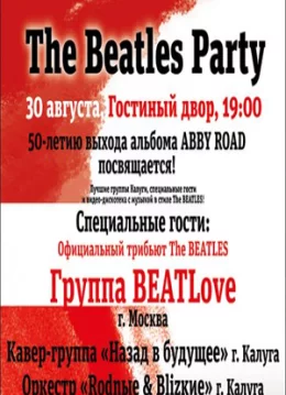30 августа на концертной площадке «Гостиный двор» состоится музыкальный фестиваль «The BEATLES Party», посвящённый 50-летию выхода альбома «ABBEY ROAD»!